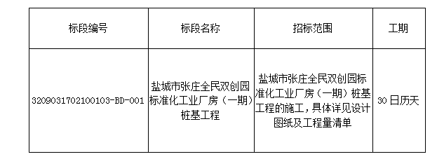 本招標(biāo)項(xiàng)目鹽城市張莊全民雙創(chuàng)園標(biāo)準(zhǔn)化工業(yè)廠房已由鹽城市鹽都區(qū)發(fā)展和改革委員會(huì)以關(guān)于鹽城市張莊全民雙創(chuàng)園建設(shè)投資有限公司建設(shè)張莊全民雙創(chuàng)園標(biāo)準(zhǔn)化工業(yè)廠房項(xiàng)目備案的通知-都發(fā)改審(2016)281號(hào)批準(zhǔn)建設(shè)。招標(biāo)人為鹽城市張莊全民雙創(chuàng)園建設(shè)投資有限公司,工程所需資金來源自籌。項(xiàng)目已具備招標(biāo)條件,現(xiàn)對(duì)該項(xiàng)目的鹽城市張莊全民雙創(chuàng)園標(biāo)準(zhǔn)化工業(yè)廠房(一期)樁基工程進(jìn)行公開招標(biāo)。本次招標(biāo)對(duì)投標(biāo)報(bào)名人的資格審查,采用資格后審方法選擇合格的投標(biāo)申請(qǐng)人參加投標(biāo)。
