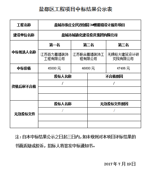 下一篇:鹽城市張莊全民雙創(chuàng)園生產(chǎn)樓幕墻設(shè)計(jì)服務(wù)項(xiàng)目中標(biāo)結(jié)果公示