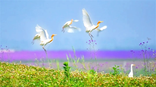 暮春漸遠初夏來,最美人間五月天。走進鹽城市蟒蛇河水上文化生態(tài)廊道,仿佛進入了一幅天然的唯美畫卷之中。粉色的月見草、紫色的鼠尾草還有各種顏色的月季花競相綻放,將整個蟒蛇河裝扮得色彩斑斕,在陽光下盡顯婀娜身姿,目之所及、綠意彌漫、繁花似錦、讓人倍感驚艷。市民游客們來到這里,賞景、露營、垂釣,感受身心與大自然產(chǎn)生的奇妙共鳴。大家在享受優(yōu)美風光、感受良好生態(tài)的同時,又能體驗到當?shù)乩锵潞拥娜宋臍庀?,來一場浪漫的夏日之旅,體驗鹽都水鄉(xiāng)的繁花絢美。