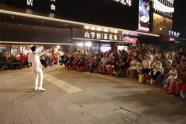 “瀆上·老西門”新時代文明實(shí)踐街區(qū)自開街以來一直是市民們享受夜間文化生活的新潮聚集地。入夏后,鹽都區(qū)精準(zhǔn)對接群眾需求,因地制宜組織了一系列高顏值、高品位、高質(zhì)量的夜間文明實(shí)踐活動。“登瀛老茶館”安排了各類經(jīng)典劇目,讓喜歡傳統(tǒng)戲曲的群眾過足癮;露天劇場喚起大家童年美好記憶,同時展示了中國幾代人拼搏奮斗的記憶;騰飛書局擁有豐富的閱讀資源開展全民閱讀,積極打造本地文化名片。
