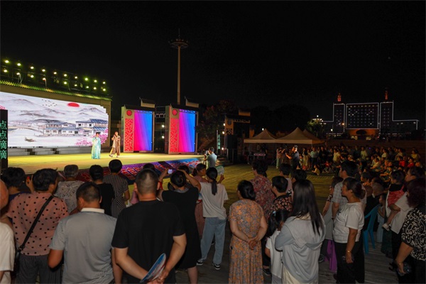 鹽都區(qū)新時代文明實(shí)踐主題公園(世紀(jì)公園)月亮廣場舞臺前座無虛席熱鬧非凡,不少在公園散步、納涼的群眾紛紛駐足觀看?;顒釉谖璧浮顿澷澬聲r代》中拉開了序幕,淮歌、情景劇、折子戲等節(jié)目輪番上演,為社區(qū)居民帶來一場精彩的視覺盛宴,演出精彩紛呈、高潮迭起,熱烈的掌聲此起彼伏。活動現(xiàn)場還播放了短片《文明“鹽”值高 點(diǎn)亮“都”星夜》和《點(diǎn)亮星夜——新時代文明實(shí)踐在鹽都》,集中展示全區(qū)“點(diǎn)亮星夜”夏季晚間新時代文明實(shí)踐主題活動啟動以來,各地活動開展情況。