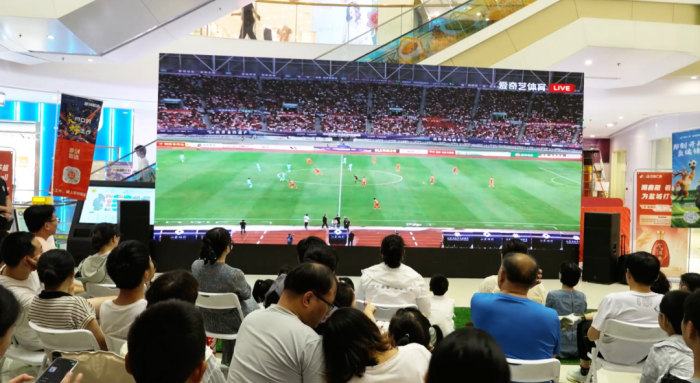 6月28日,鹽都萬達(dá)廣場的一樓中庭化作沸騰的綠茵戰(zhàn)場,300平方米的超清巨幕上清晰展現(xiàn)球員們的每一次拼搶、每一腳射門,現(xiàn)場座無虛席,球迷們目不轉(zhuǎn)睛緊盯賽況。隨著比賽進(jìn)入白熱化,助威聲、歡呼聲如浪潮翻涌,沉浸式觀賽體驗(yàn)將賽場的熱血與激情完美復(fù)刻。