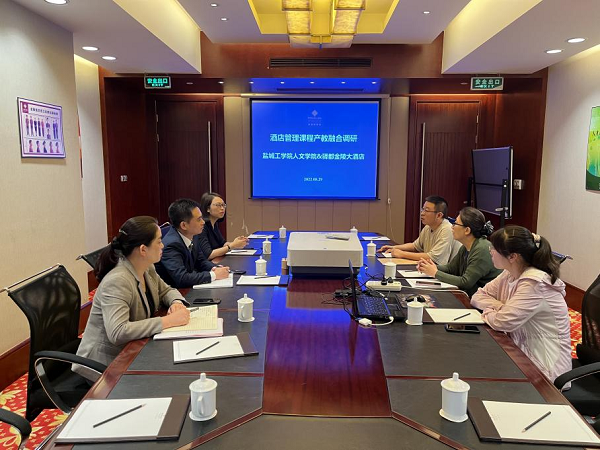 8月29日下午,鹽城工學(xué)院人文社會科學(xué)學(xué)院酒店管理系劉鵬、葛江徽等老師來到驛都大酒店就產(chǎn)教融合開展座談與實地調(diào)研,酒店人力資源總監(jiān)蔡秀霞、房務(wù)總監(jiān)唐家奎、餐飲總監(jiān)蔡萍參加了調(diào)研交流活動。