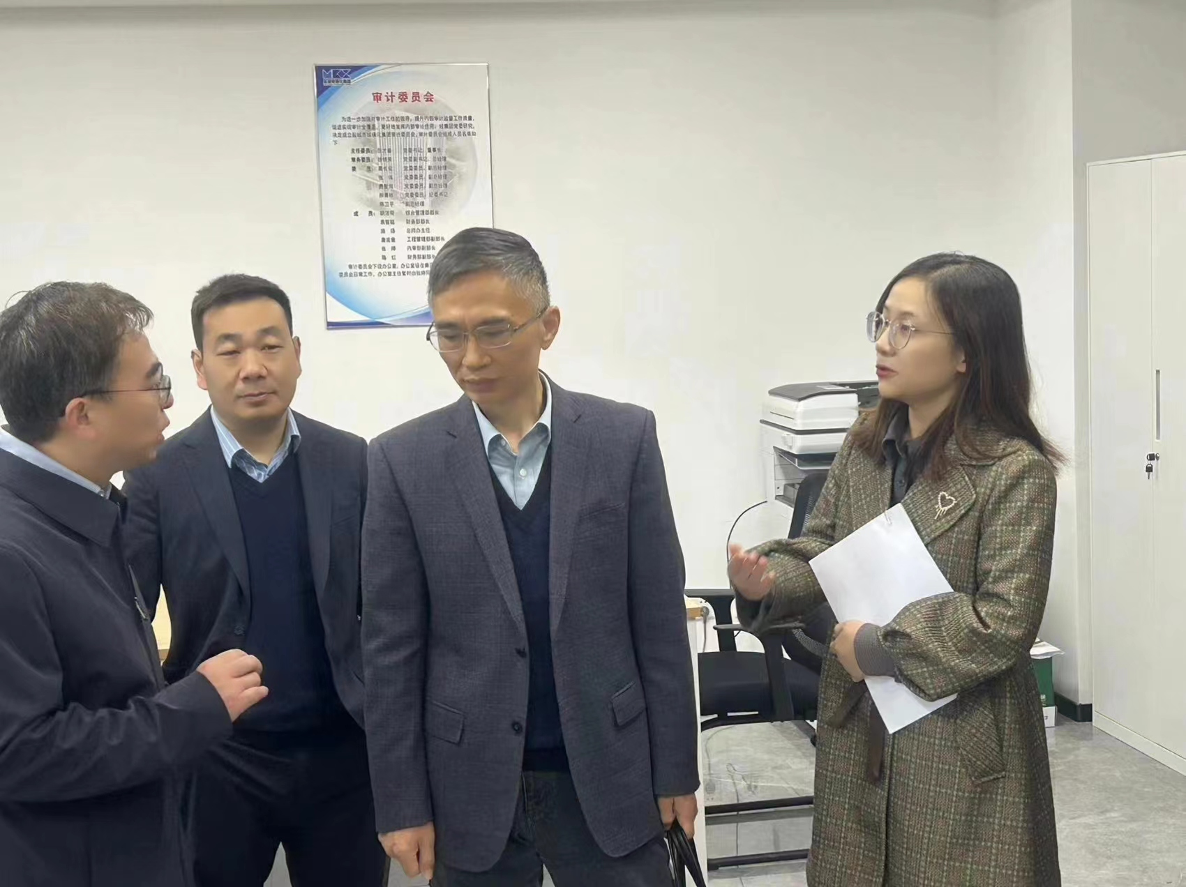 市審計(jì)局領(lǐng)導(dǎo)蒞臨集團(tuán)內(nèi)審部進(jìn)行現(xiàn)場(chǎng)指導(dǎo),就集團(tuán)審計(jì)工作開展情況展開了充分交流,并對(duì)集團(tuán)審計(jì)機(jī)構(gòu)設(shè)置、制度上墻、自主審計(jì)、卷宗規(guī)范、制度歸類等工作給予了充分肯定。李樹峰提出,集團(tuán)要增強(qiáng)責(zé)任意識(shí),高度重視審計(jì)工作,以有力有效的審計(jì)服務(wù)保障集團(tuán)平穩(wěn)、有序、高效運(yùn)行。