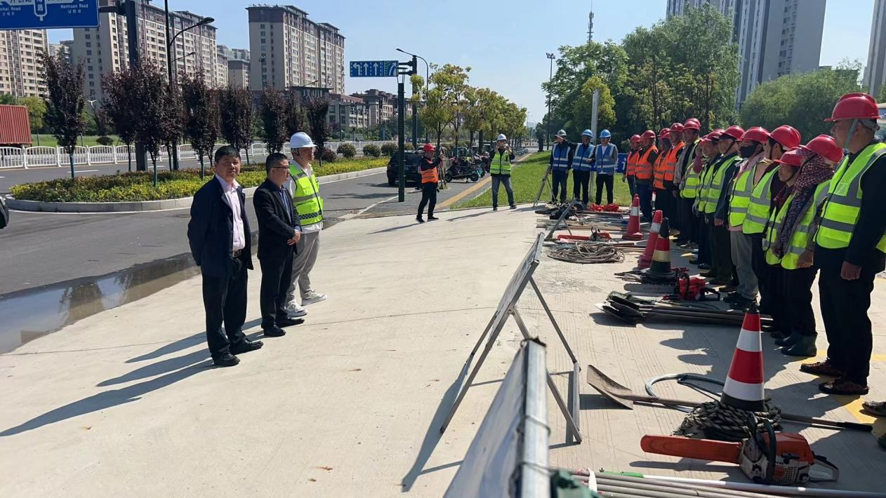 本次演練設(shè)定了臺風(fēng)過后樹木倒伏、市政積水等險(xiǎn)情背景,巡查人員發(fā)現(xiàn)問題后,第一時(shí)間匯報(bào)指揮部,指揮部立即啟動(dòng)應(yīng)急預(yù)案,應(yīng)急隊(duì)伍在周邊設(shè)置防護(hù)安全措施,引導(dǎo)行人車輛通行,同時(shí)對倒伏樹木、積水路段進(jìn)行全面檢查,做好后續(xù)疏通恢復(fù)。