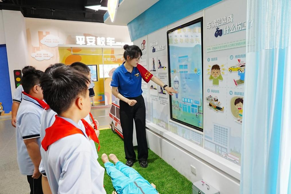 直播鏡頭下,油麻地小學(xué)教室內(nèi)外變成交通安全大舞臺(tái)。 教室內(nèi),民警通過(guò)通俗易懂的語(yǔ)言和啟發(fā)式教學(xué)引導(dǎo)同學(xué)們?cè)谌粘I钪凶袷亟煌ǚㄒ?guī)。教室外,孩子們通過(guò)踢毽子、滾鐵環(huán)等趣味游戲輕松掌握交通法規(guī)知識(shí)。在交通安全實(shí)景體驗(yàn)館內(nèi),主持人帶領(lǐng)學(xué)生們體驗(yàn)不同場(chǎng)景下復(fù)雜多變的交通狀況,孩子們坐上基地“頂流”“育才號(hào)”校車,通過(guò)校車模擬駕駛艙、VR眼鏡沉浸式感受實(shí)景駕駛。