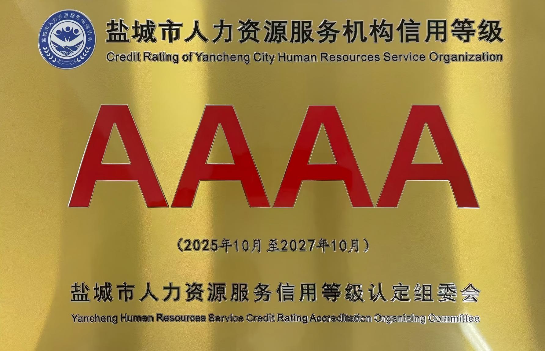 人力資源服務(wù)機(jī)構(gòu)等級評定,是鹽城市為規(guī)范行業(yè)發(fā)展、樹立服務(wù)標(biāo)桿、推動人力資源行業(yè)提質(zhì)增效而實施的重要舉措。4A級代表著在服務(wù)能力、管理體系、社會效益、誠信經(jīng)營等方面達(dá)到了行業(yè)的領(lǐng)先水平。此次獲評,不僅是對公司能力的肯定,更是一份沉甸甸的責(zé)任,立新人力公司將以此為契機(jī),持續(xù)提升業(yè)務(wù)能力,積極承擔(dān)社會責(zé)任,引領(lǐng)行業(yè)健康發(fā)展。