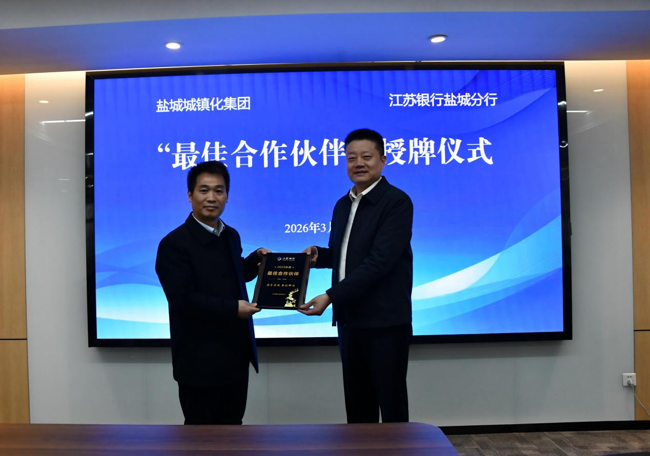 3月17日,江蘇銀行鹽城分行黨委書記、行長(zhǎng)張建軍一行到訪鹽城城鎮(zhèn)化集團(tuán),并向集團(tuán)授予“2025年度最佳合作伙伴”獎(jiǎng)牌。集團(tuán)黨委書記、董事長(zhǎng)倪才春熱情接待張建軍一行并接牌。